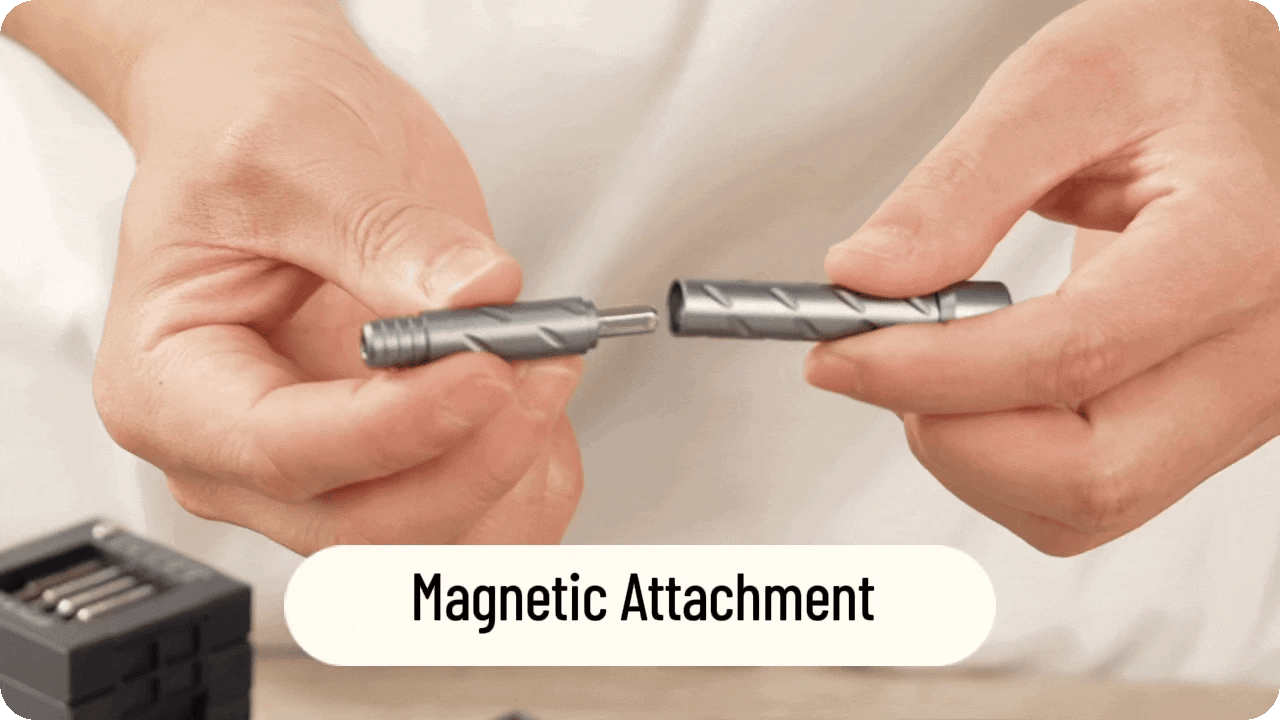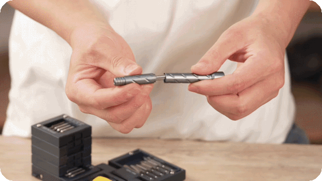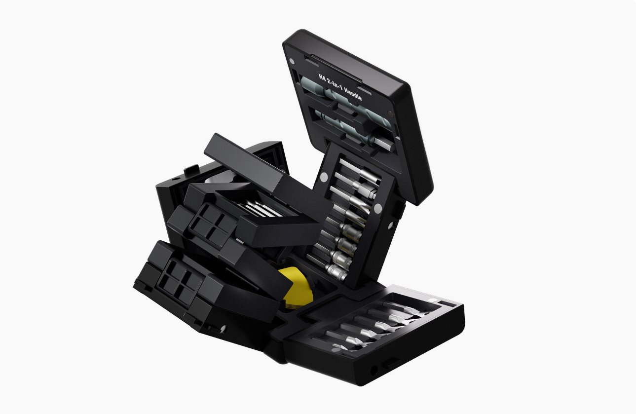 From opening the case and transforming the handle to snapping in bits, every action delivers a crisp, satisfying magnetic click.