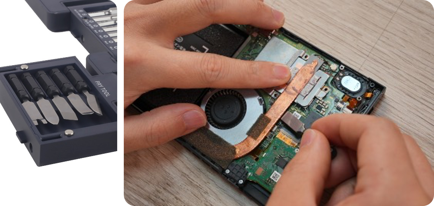 Purpose-built mini pry tools, ergonomically contoured to fit naturally in your hand for delicate leverage and precise control.